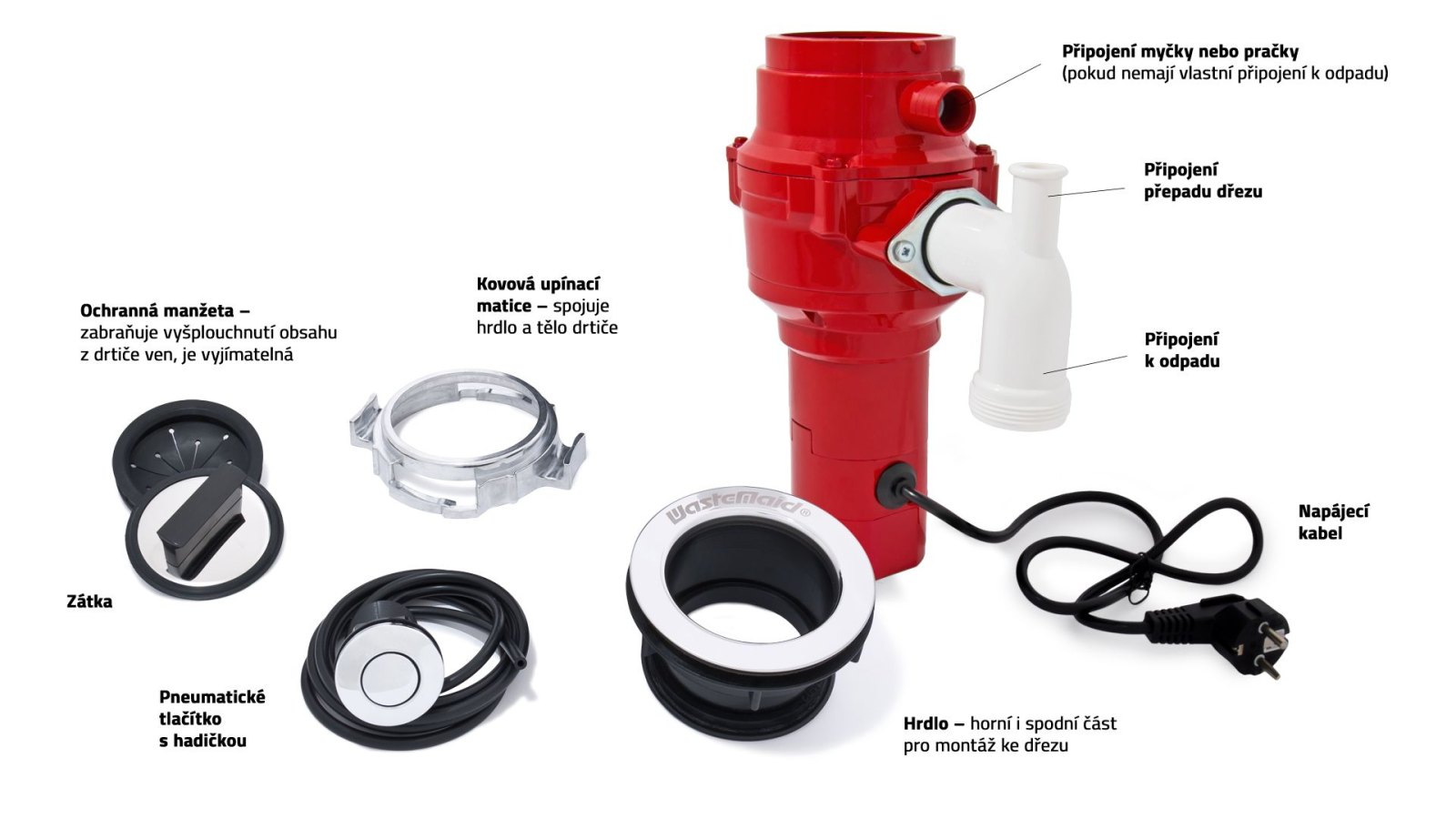 - Zátka na drtič a ochranná manžeta jsou součástí.